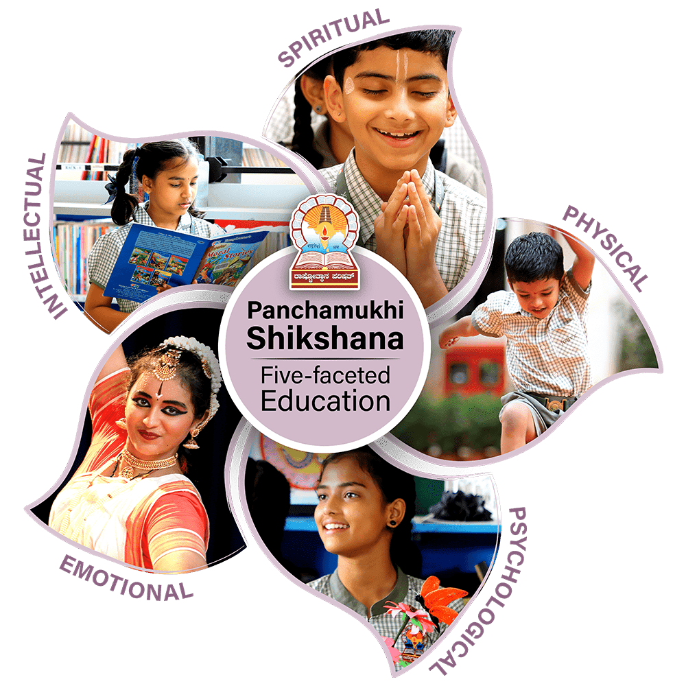The basic system of education at RVKs (Rashtrotthana Vidya Kendra) is known as ‘Panchamukhi Shikshana’, a value-based education for the all-round development of a child. Apart from Intellectual Development, focus is also given on the Emotional, Psychological, Physical and Spiritual Development in order to bring the holistic growth in the students.