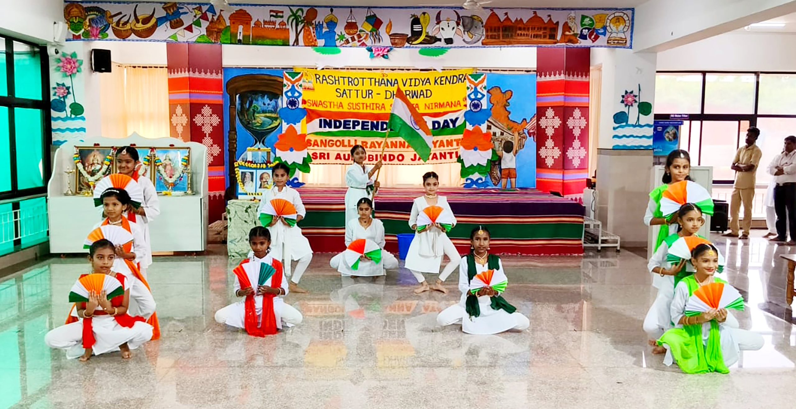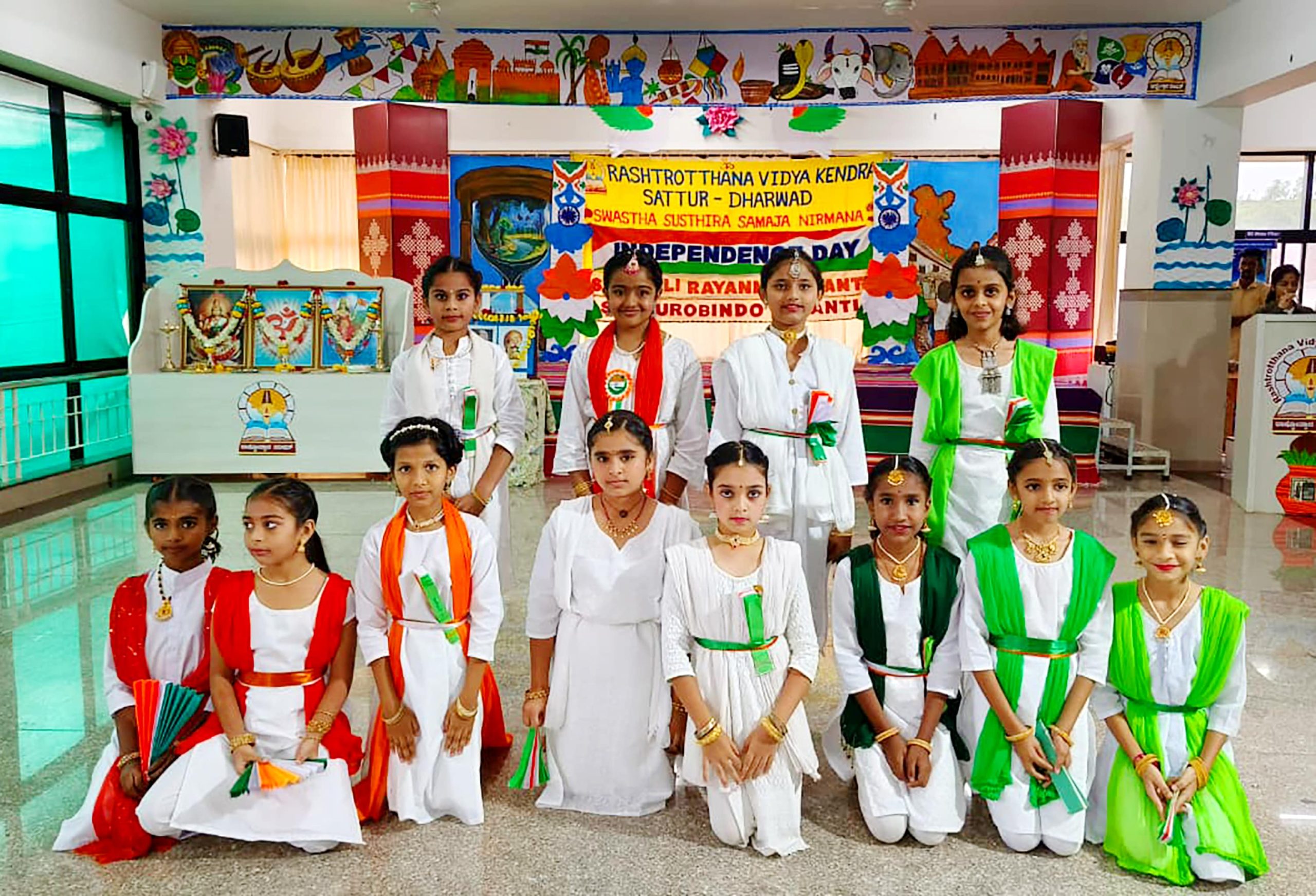 ಧಾರವಾಡ, ಆ. 15: ರಾಷ್ಟ್ರೋತ್ಥಾನ ವಿದ್ಯಾಕೇಂದ್ರ – ಸತ್ತೂರಿನಲ್ಲಿ 79ನೇ ಸ್ವಾತಂತ್ರ್ಯ ದಿನಾಚರಣೆಯನ್ನು ಆಚರಿಸಲಾಯಿತು. ಮುಖ್ಯ ಅತಿಥಿಗಳಾಗಿ ಮೇಜರ್ ಶ್ರೀ ರಾಜು ಮಠಪತಿ ಅವರು ಧ್ವಜಾರೋಹಣ ಮಾಡಿದ ನಂತರ ಘೋಷ್ ತಂಡ ರೋಮಾಂಚಕ ಪ್ರದರ್ಶನ ನೀಡಿತು. ವಿದ್ಯಾರ್ಥಿಗಳು ನೃತ್ಯಗಳು, ದೇಶಭಕ್ತಿ ಗೀತೆಗಳು, ಕಿರುನಾಟಕಗಳು ಪ್ರದರ್ಶಿಸಿದರು ಮತ್ತು ಸ್ಪೂರ್ತಿದಾಯಕ ಭಾಷಣಗಳ ಮಾಡಿದರು. ಮುಖ್ಯ ಅತಿಥಿ ಮೇಜರ್ ಶ್ರೀ ರಾಜು ಮಠಪತಿ ಅವರು ಸಭೆಯನ್ನು ಪ್ರೇರಕ ಮಾತುಗಳೊಂದಿಗೆ ಉದ್ದೇಶಿಸಿ ಮಾತನಾಡಿ, ತಮ್ಮ ಸೇನಾ ಸೇವೆಯ ಅನುಭವಗಳನ್ನು ಹಂಚಿಕೊಂಡರು. ಶಾಲಾ ಬಾತ್ಮೀದಾರರಾದ ಶ್ರೀ ಗುರುರಾಜ್ ಅಗಡಿಯವರು ಅಧ್ಯಕ್ಷೀಯ ಭಾಷಣ ಮಾಡಿ, ವಿದ್ಯಾರ್ಥಿಗಳು ಶಿಸ್ತು ಮತ್ತು ಸಮರ್ಪಣೆಯ ಮೌಲ್ಯಗಳನ್ನು ಎತ್ತಿಹಿಡಿಯಲು ಪ್ರೋತ್ಸಾಹಿಸಿದರು.