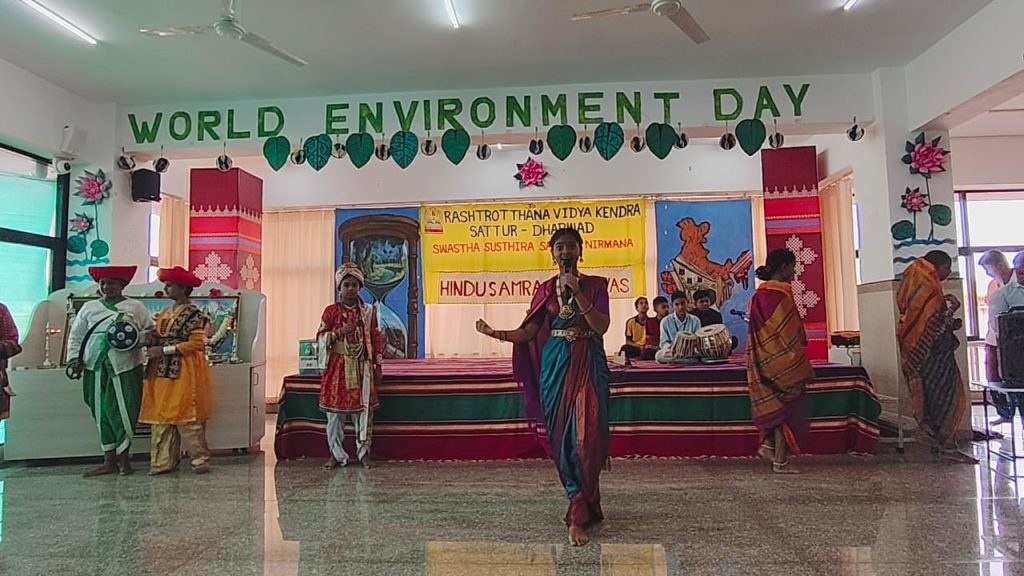 Dharwad, June 17: Hindu Samrajyotsava was celebrated herein Rashtrotthana Vidya Kendra – Sattur.The students performed a skit on the life and achievements of Chhatrapati Shivaji Maharaj. They gave a monologue and speech on leadership and patriotism. They sang a song on Hindu Empire.