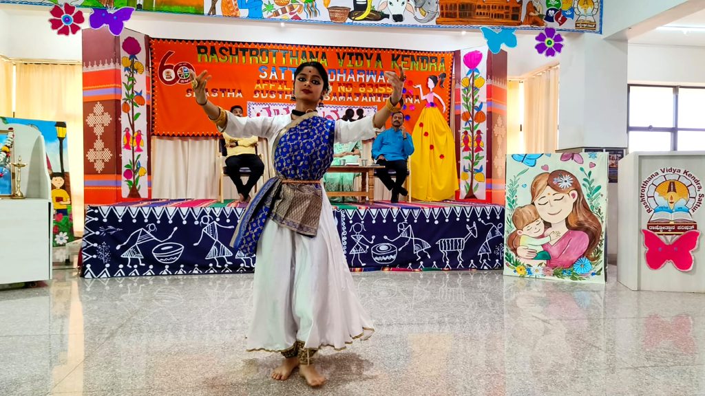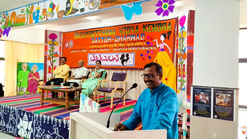 Dharwad, Mar. 14: A Matrimilan program was organized herein Rashtrotthana Vidya Kendra – Sattur. The chief guests were Smt. Mrinal Joshi and Sri Ashok Sonkar. Smt. Mrinal Joshi spoke about the role of mothers in a child’s education and beautifully explained that parents should not only expect marks from their children. Instead, they should encourage their interests, talents and skills. She stressed the importance of spending quality time with children and advised parents to avoid excessive screen time. Addressing the gathering, Sri Ashok Sonkar spoke about the importance of patience in motherhood and encouraged mothers to guide their children with love, care and good manners. He appreciated the participation of all the mothers. Sri Gururaj Agadi, School Correspondent, delivered the keynote address and shared valuable thoughts on the importance of parental involvement in the overall development of children. Some mothers shared their experiences and opinions. Teachers performed a thought-provoking drama and dance on mobile awareness, highlighting the importance of limiting mobile usage for children.
