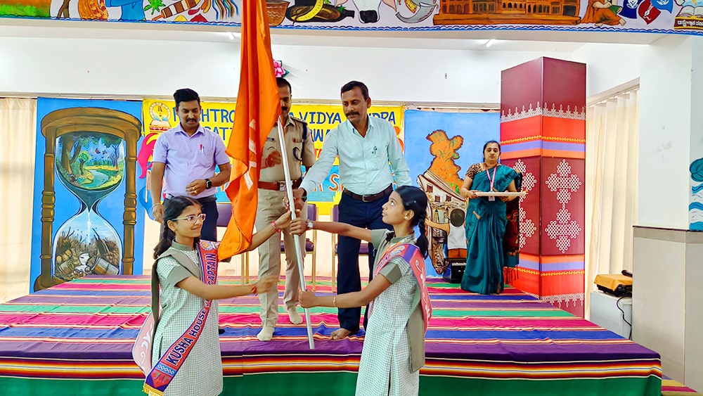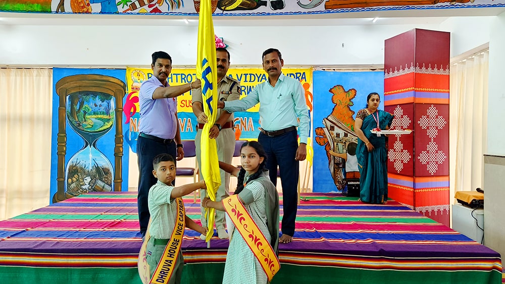 Dharwad, July 5: The Pratigna Swikara Samarambha (Oath Taking Ceremony) for the newly elected School Council Members was held herein RVK Sattur. Sri Dhulappa Dhangar, DySP, was the chief guest and addressed the students with a message from his real-life experiences that “A leader is not a boss, but a team player.” The oath-taking ceremony was conducted by Principal Sri Ramakrishna, who guided the leaders in taking the pledge to serve with discipline, dedication and teamwork.