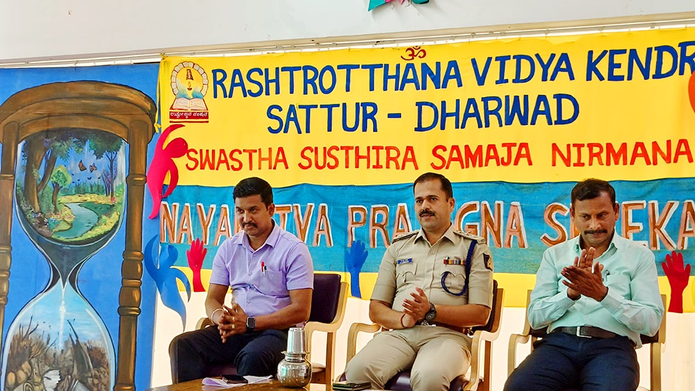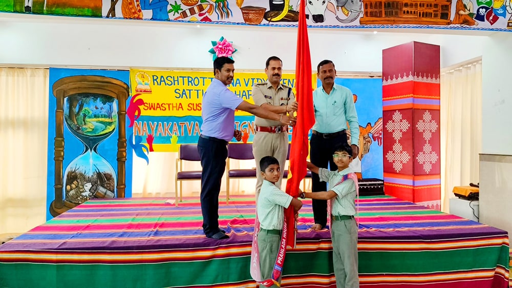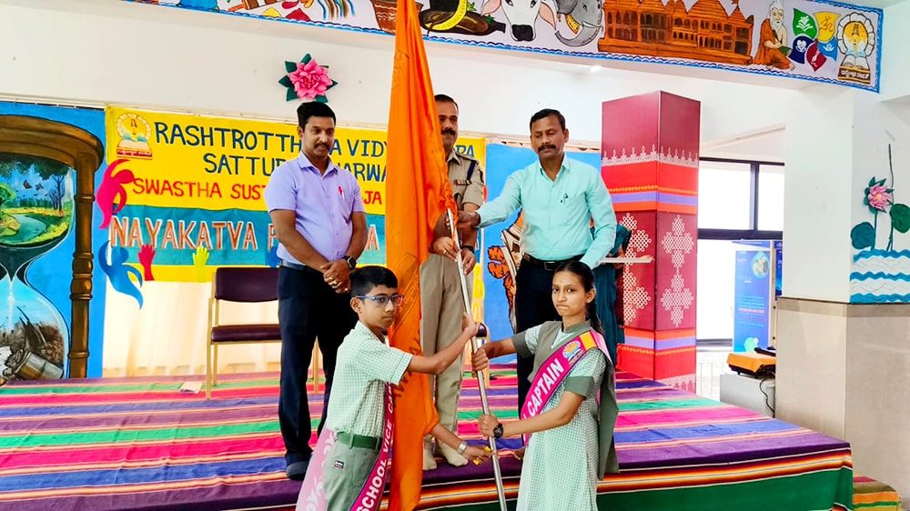 ಧಾರವಾಡ, ಜುಲೈ 5: ರಾಷ್ಟ್ರೋತ್ಥಾನ ವಿದ್ಯಾಕೇಂದ್ರ – ಸತ್ತೂರಿನಲ್ಲಿ ಪ್ರತಿಜ್ಞಾ ಸ್ವೀಕಾರ ಸಮಾರಂಭವನ್ನು ಹಮ್ಮಿಕೊಳ್ಳಲಾಗಿತ್ತು. ಶ್ರೀ ದೂಲಪ್ಪ ಧಂಗರ್, ಡಿವೈಎಸ್ಪಿ, ಅವರು ಮುಖ್ಯ ಅತಿಥಿಗಳಾಗಿ ಆಗಮಿಸಿ ವಿದ್ಯಾರ್ಥಿಗಳಿಗೆ “ನಾಯಕನು ಬಾಸ್ ಆಗಿರುವುದಿಲ್ಲ, ಬದಲಾಗಿ ತಂಡದೊಂದಿಗೆ ನಡೆಯುವವನಾಗಿರಬೇಕು.” ಎನ್ನುತ್ತ ತಮ್ಮ ನಿಜಜೀವನದ ಅನುಭವಗಳೊಡನೆ ಸಂದೇಶಯುಕ್ತ ಮಾತನ್ನಾಡಿದರು. ಪ್ರಮಾಣವಚನ ಸ್ವೀಕಾರ ಸಮಾರಂಭವನ್ನು ಪ್ರಾಂಶುಪಾಲರಾದ ಶ್ರೀ ರಾಮಕೃಷ್ಣ ನಡೆಸಿಕೊಟ್ಟರು. ಅವರು ಶಿಸ್ತು, ಸಮರ್ಪಣೆ ಮತ್ತು ತಂಡದ ಕೆಲಸದೊಂದಿಗೆ ಸೇವೆ ಸಲ್ಲಿಸುವ ಪ್ರತಿಜ್ಞೆಯನ್ನು ತೆಗೆದುಕೊಳ್ಳುವಲ್ಲಿ ನಾಯಕರಿಗೆ ಮಾರ್ಗದರ್ಶನ ನೀಡಿದರು.