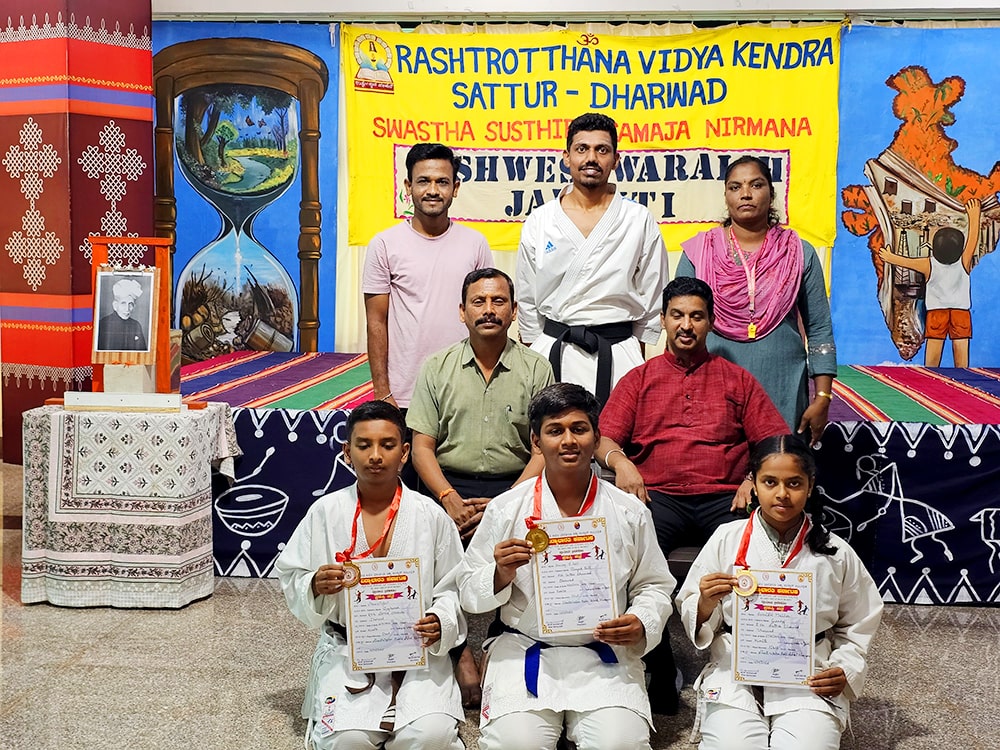 Dharwad, Septt. 15: Rashtrotthana Vidyakendra – Sattur students Vikas Poojary, Anurag Patil and Sanidhi Mylar participated in Vidya Bharati State Level Karate Competition held at Kanapur in Belgaum district and won 1st place and are selected for National Level Karate Competition.