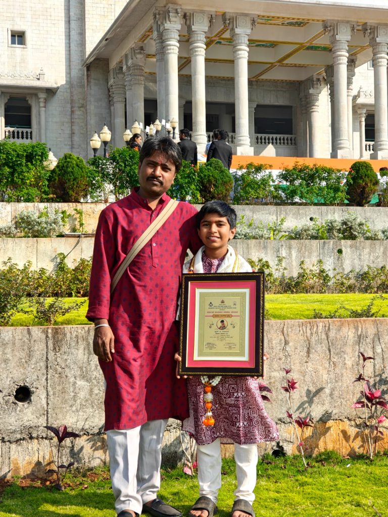 Dharwad, Dec. 18: Satvik Mahamani, a student of Rashtrotthana Vidya Kendra – Sattur, was honored with the prestigious Bal Gaurav Award by the Karnataka Bal Vikas Academy on December 18, 2025, at the historic Suvarna Soudha in Belgaum, for his outstanding performance in violin playing.