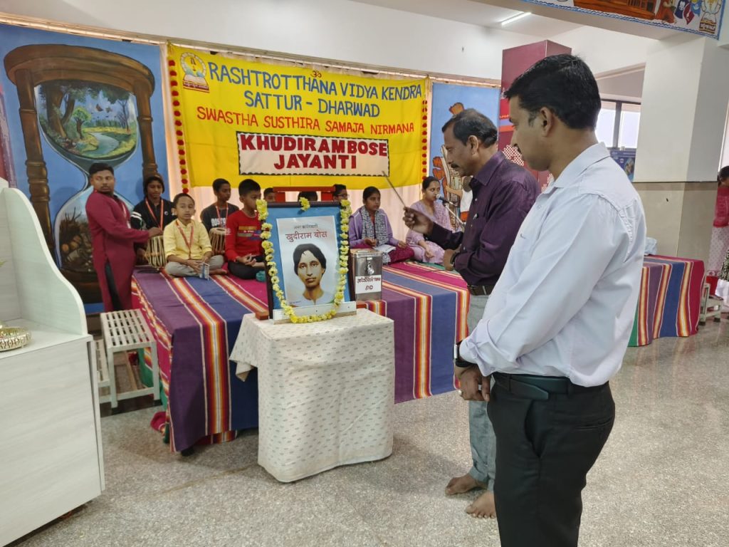 Dharwad, Dec. 3: Khudiram Bose Jayanti was celebrated herein Rashtrotthana Vidya Kendra – Sattur. Students shared information about his life and his significant contribution to the Indian freedom struggle.