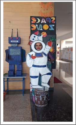 Students of Grade 2 participated in a puzzle-solving competition, solving science-based crosswords games. The event promoted logical thinking and problem-solving skills. The assembly program was led by Grade 2, where students dressed up as scientists and performed hands-on activities.